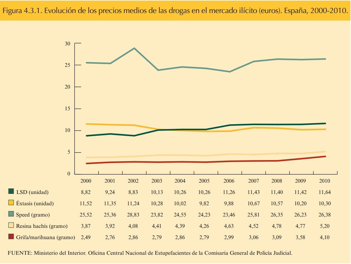 La evolución del precio de la droga