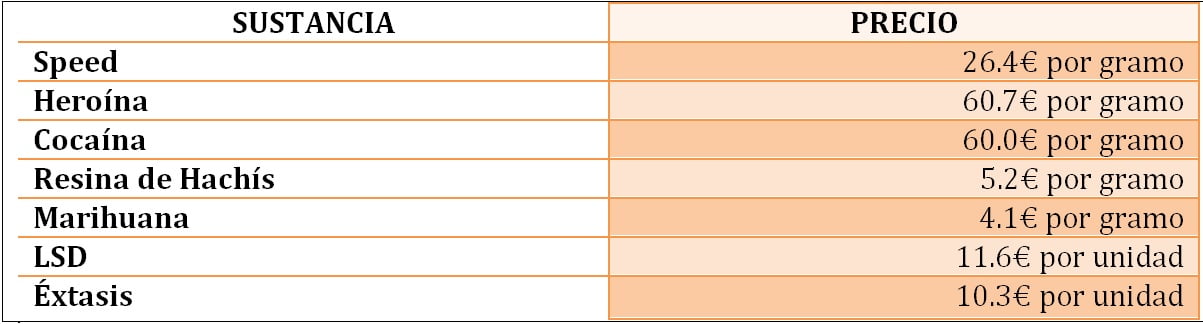 El resultado de un primer análisis de esta tabla nos arroja unos precios realmente muy ajustados a la realidad del mercado ilegal de drogas. Ahora bien, no se trata siempre de precios exactos ya que, también en este mercado ilegal influyen cuestiones como el volumen de compra, la frecuencia de compra e incluso, al tratarse de un mercado tan irregular desde todos los puntos de vista, entran en juego cuestiones personales que pueden resultar determinantes en el precio. Sin embargo, la siguiente tabla nos acerca bastante a la realidad del coste de las drogas con mayor uso en nuestro país: