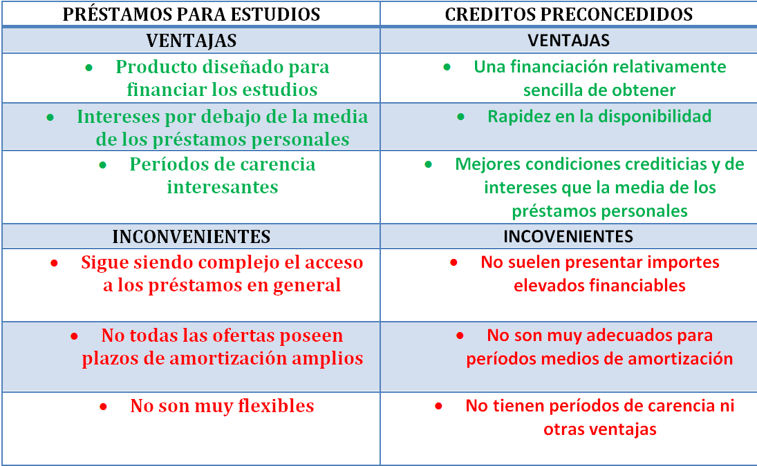 Préstamos para estudios vs Créditos preconcendidos